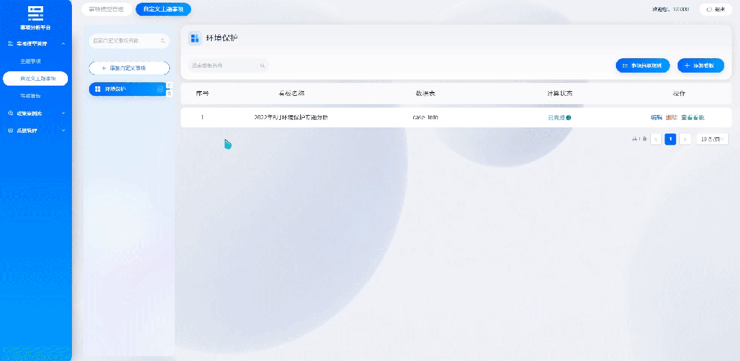 专题事项分析系统是一个通过多维度的数据自定义筛选、算法模型适配,对相关主题事项数据进行深度挖掘分析、产出专题报告,从而辅佐日常业务分析及决策制定的综合性大数据分析系统。