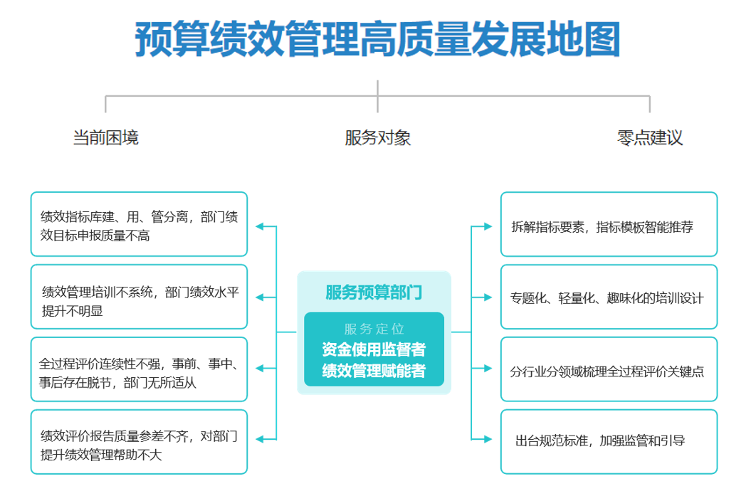 出路:专题化、轻量化、趣味化的培训设计。财政部门与预算单位合作,并引入第三方专业机构和专家的力量,共同开展绩效管理培训设计,梳理预算部门开展全过程绩效管理工作当中存在的问题清单,根据问题和需求设计专题化、轻量化的培训课程。进一步丰富培训手段,采用趣味化、视频化的方式,在讲解的同时结合落地辅导,在实际工作场景中提升预算部门的绩效管理水平。