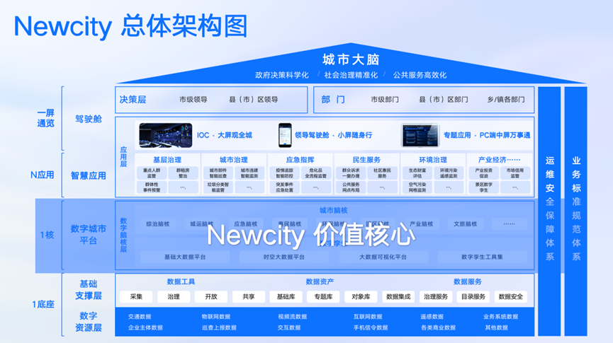 NewCity中的“NEW”强调“Native(原生打造)”“Efficient(高效性能)”和“Wise(智慧融合)”。NewCity构建了有生命力的城市高精度城市信息模型(CIM),建立了高智能数据驱动业务流转的城市脑核,适用于城市运行的多个细分行业与细分领域,将真正地把行业经验与数字技术深度结合,通过数据的深度应用解决行业的具体问题和关键问题。