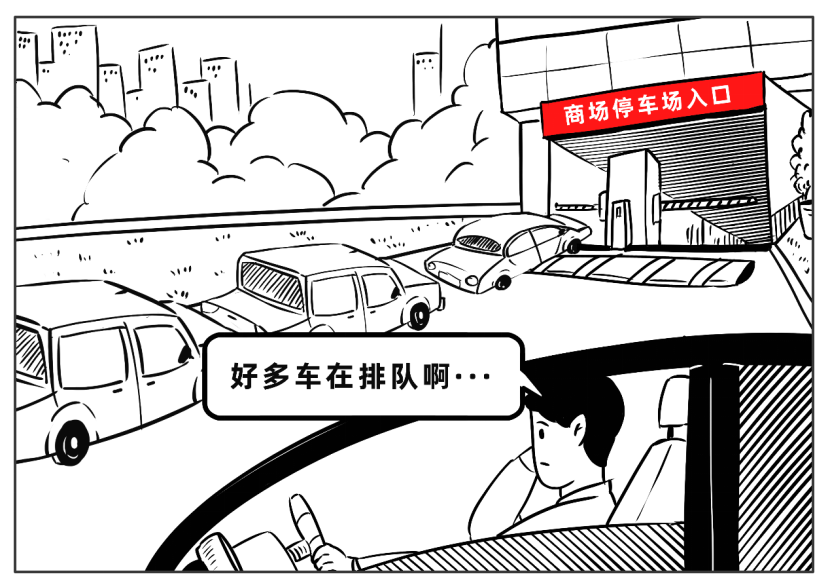 “商场停车入口就一个,还没进场,就在入口处排队等了起来,有时候要等10分钟以上,感觉遥遥无期,好几次看见排队,掉头就走了。”