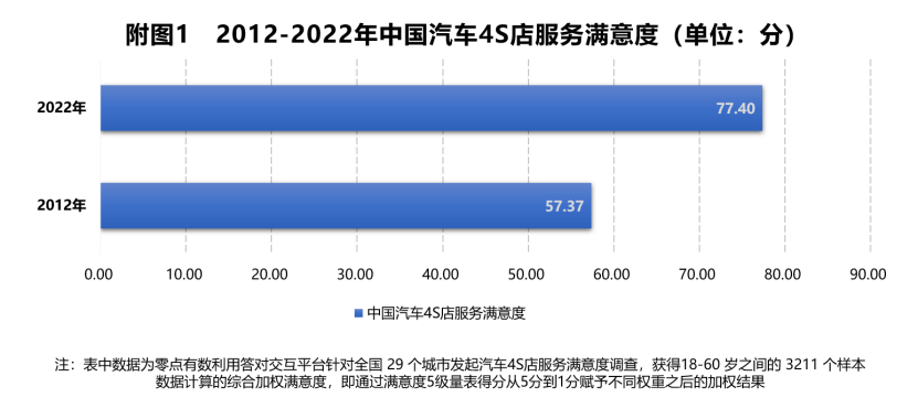 与此同时,中国汽车4S店服务满意度大幅提升。9428cn太阳集团古天乐数据显示, 2022年中国汽车4S店服务满意度得分为77.4分,相较于2012年提高约20分,中国汽车4S店服务的创新发展得到市场用户的高度认可。